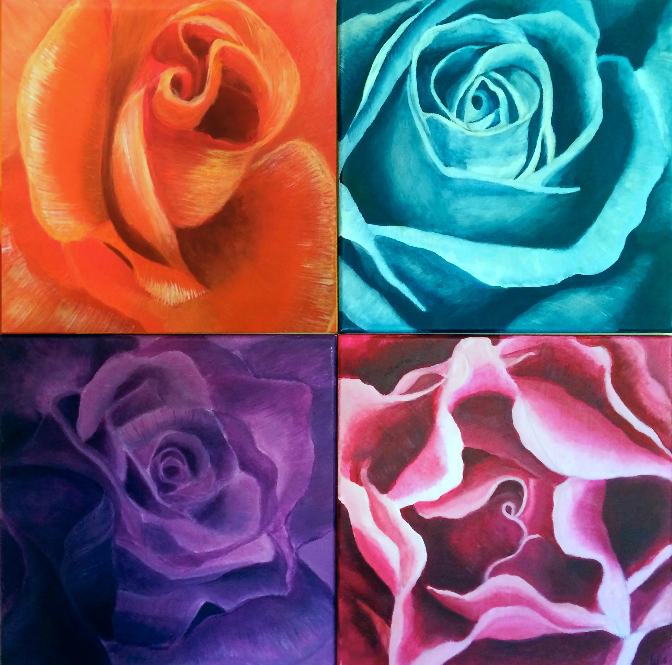 I have a love of painting nature, particularly florals. I tend to work predominantly in acrylic paint, but also an occasional watercolor, oil, pastel, silkscreen, or charcoal pencil for variety, as well as digital painting.